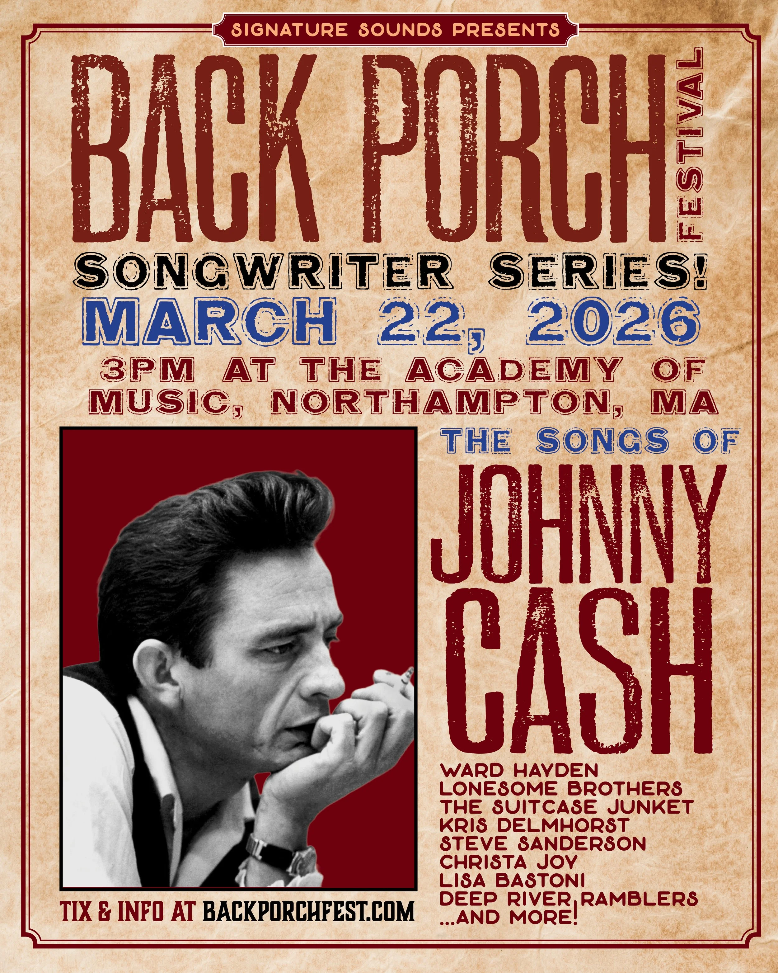 JOHNNY CASH TRIBUTE SHOW // A few times a year Signature Sounds puts together a show celebrating the work of a particular icon of songwriting. I’ve gotten to be a part of several of them over the years and it’s always an inspiring, surprising, joyful scene. This afternoon show - *3:00pm* Sunday, March 22 at the Academy of Music in Northampton MA - will certainly be a blast, with songs from the Cashalogue performed by the Suitcase Junket, The Lonesome Brothers, Ward Hayden & the Outliers, Lisa Bastoni, Christa Joy, and yours truly, with a great house band. I’ve learned some deep cuts for the occasion and can’t wait to take them for a spin!